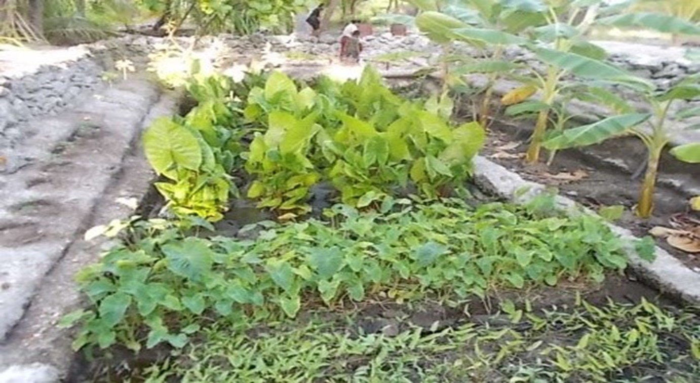 He became the role model and champ by introducing a terraced model to a fallow pit and planting many kinds of edible crops using terraces as for limited land. The little land used in the terraced model can provide a family with lots of different foods ranging from fruit trees, root crops and leafy vegetables starting from the water lens to the top soil or ground level. For his determination and success back home, Barenaba had been invited to attend workshops in Tarawa where he shared his life experiences starting from hardships to his success in home gardening using unused giant taro pits for terracing models as well as gene bank for varieties of local food crops.His efforts and determination had also given him and his family more hopes in future. His hard labour had paid off by eating various kinds of foods readily available from such a small piece of land that he had remodelled to his family needs.